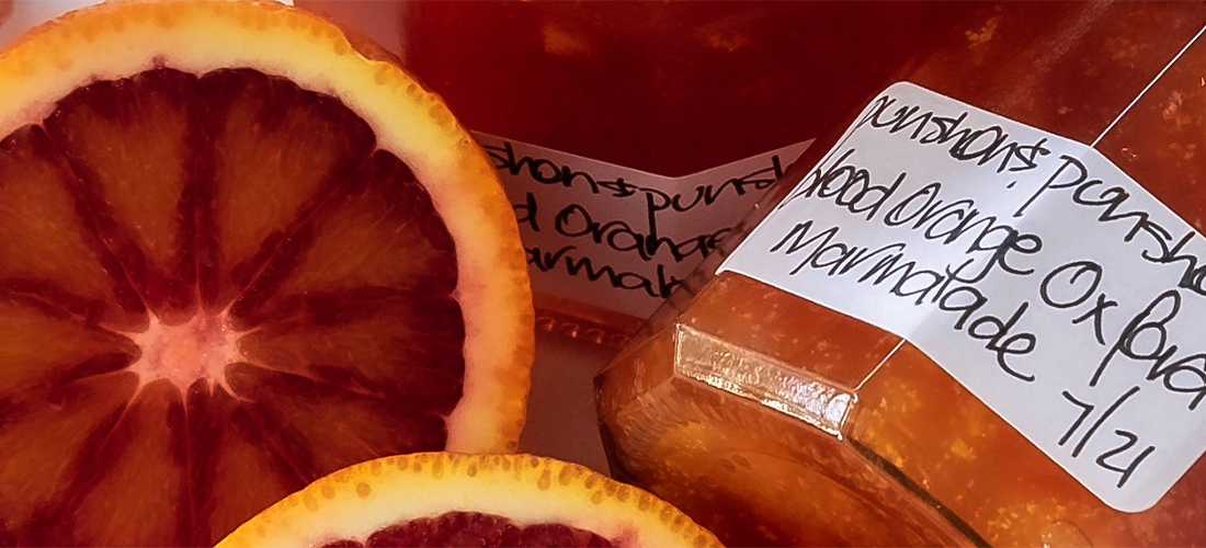 Blood oranges, made in the Oxford style, produce a distinctive marmalade. Simmering the fruit whole is the secrete to producing a full-bodied preserve with a unique character. Combining this traditional marmalade method with blood oranges instead of Seville and replacing very dark and robust flavoured molasses with sugar breathes new life into Oxford Marmalade. It’s still richly coloured, thick, and chunky and a standout in the diverse stable of marmalade flavours and styles.