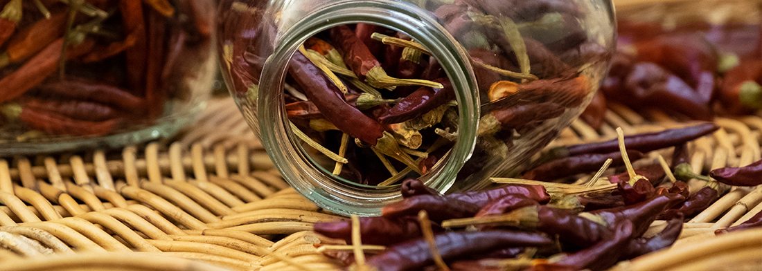 Chilli (native Nahuatl word), also referred to as chili or hot peppers (USA) or chile (Spanish) is native to South America. They were traded across the Andes and established in America and the subtropics until they were discovered by Christopher Columbus in the West Indies. Travelling the world trade routes together, the chilli was quickly embraced in Europe as it provided a similar spicy characteristic to foods as true pepper (Piper nigrum) at a fraction of the price. Today chilli is one of the most widely grown spices in the world.
