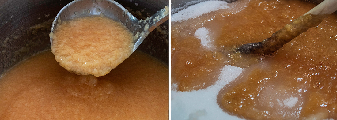 Pulp the fruit mixture using either a food mill or through a fine sieve. Remove any pips.