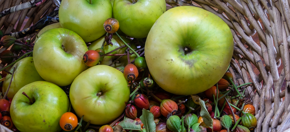 Wash the apples to remove any garden or shop debris. Wash the rosehips and remove the ends. Remove any bruised or damaged fruit.