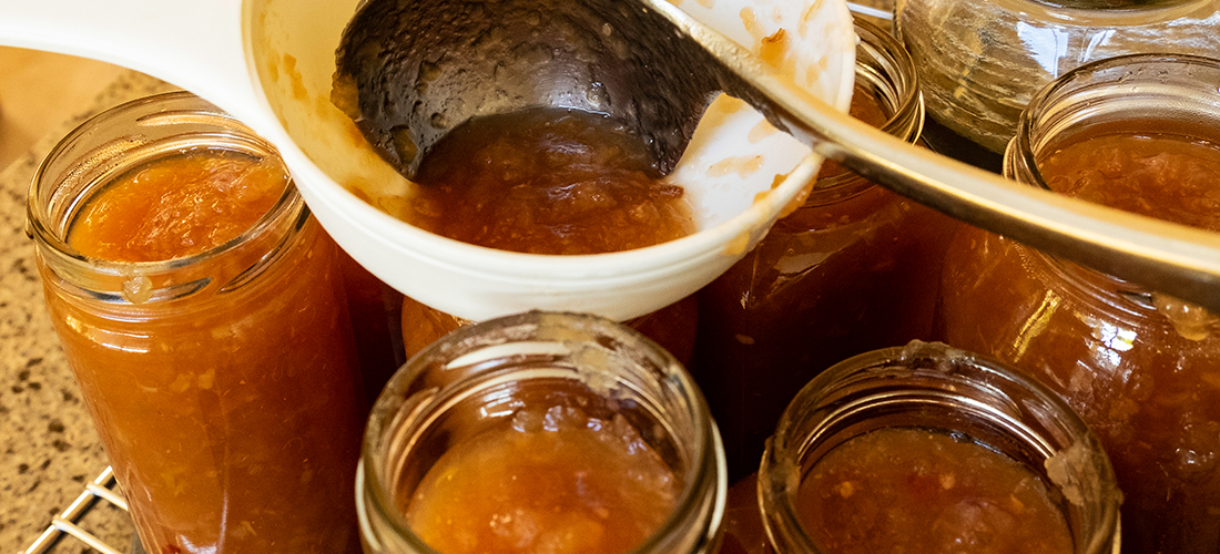 Bring to the boil then reduce and simmer, stirring occasionally to prevent chutney from sticking on the bottom of the pan, for approximately 1 – 1 ½ hrs. The chutney is cooked when the apple and onion are soft and transparent, and the mixture has thickened.