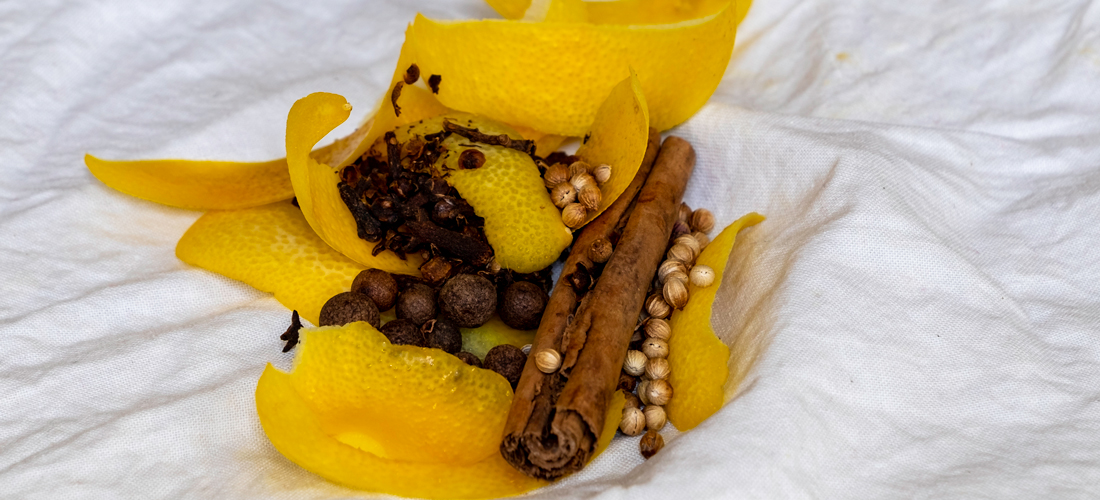 Place the lemon rind and spices in a calico cloth. Tie up to make a spice bag. For more detailed instructions refer to the Notes section below.