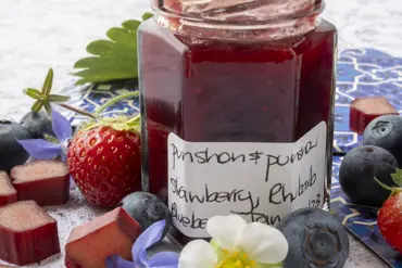 Sweet soft berries combined with the tang of rhubarb; this jam is one of the specialty pots in our pantry....